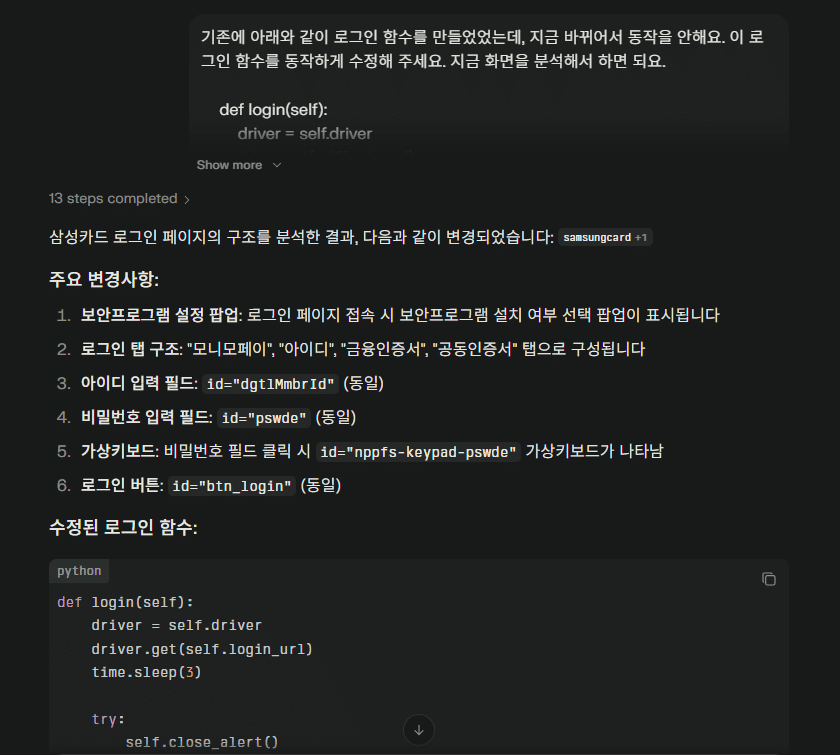 1. 문제상황: 웹사이트 구조 변경으로 인한 삼성카드 자동화 중단