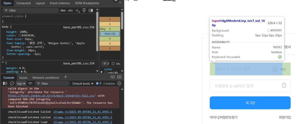4. "입력완료" → "로그인" 버튼 클릭