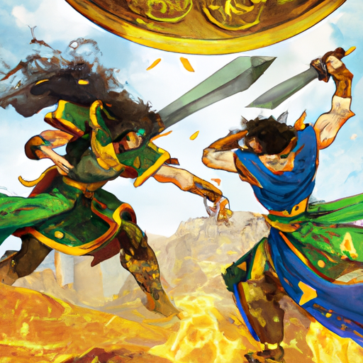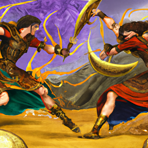 By ChatGPT/DALI – 기원전 627년 – 아슈르바니팔이 죽고, 이후 두 아들 신 샤리 이슈쿤과 아슈르 에텔 일라니 사이에 내전이 벌어진다.
