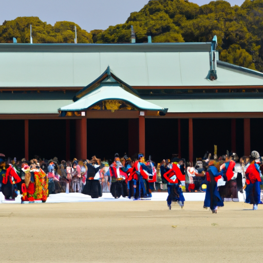 진무 덴노는 일본 왕국의 첫 번째 왕위에 오르기 전에 각 지역의 왕들이 모여 일본의 역사적 중요성을 반영하고 있는 의식을 행하기 위해 본관에 모여 왔다. 이 의식은 이 날 일본 전역에서 열렸던 축제로 비정하고 있다.