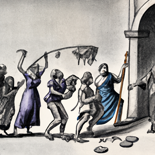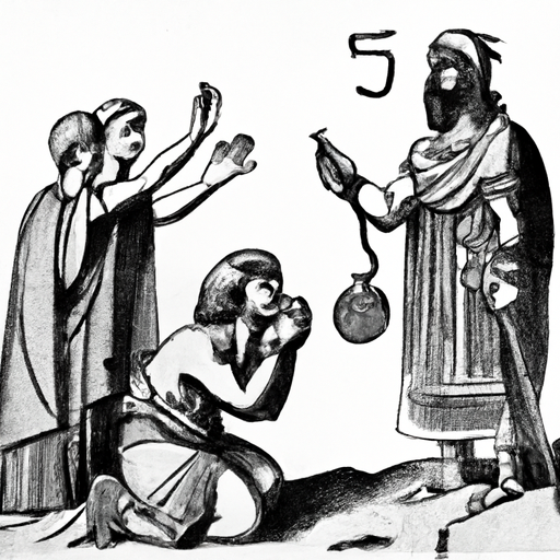 By ChatGPT/DALI – 기원전 587년 – 신바빌로니아의 네부카드네자르 2세가 남유다 왕국을 멸망시킨다. 시드기야 왕을 비롯한 유대인들이 바빌론에 억류된다.